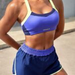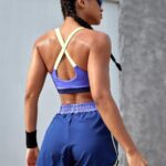 Powerista Conjunto deportivo de mujer con camiseta de tirantes de color contrastante y shorts de cintura elástica